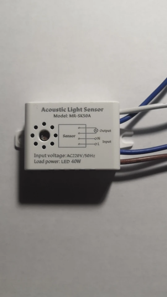 Когда заказывал, думал это выключатель (хлопнул - включился, хлопнул - отключился). Оказалось - датчик, который в темноте при резком звуке включает питание на 50 сек. В общем, работает, но за скудность описания 4.