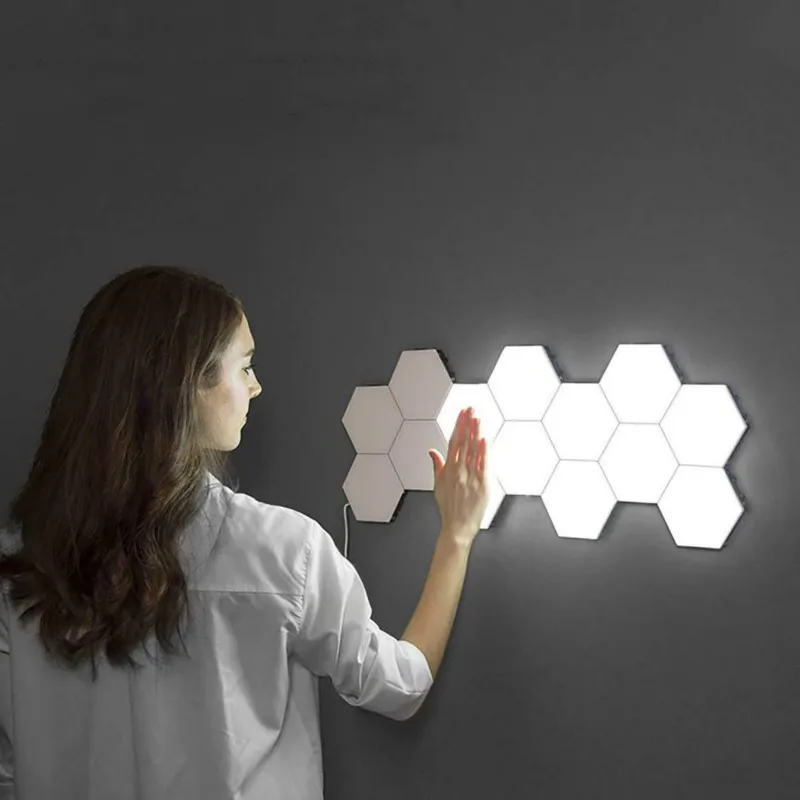 Квантовый настенный светильник, светодиодный модульный сенсорный светильник, шестиугольные лампы, ночник, магнитное креативное украшение для светильник щения