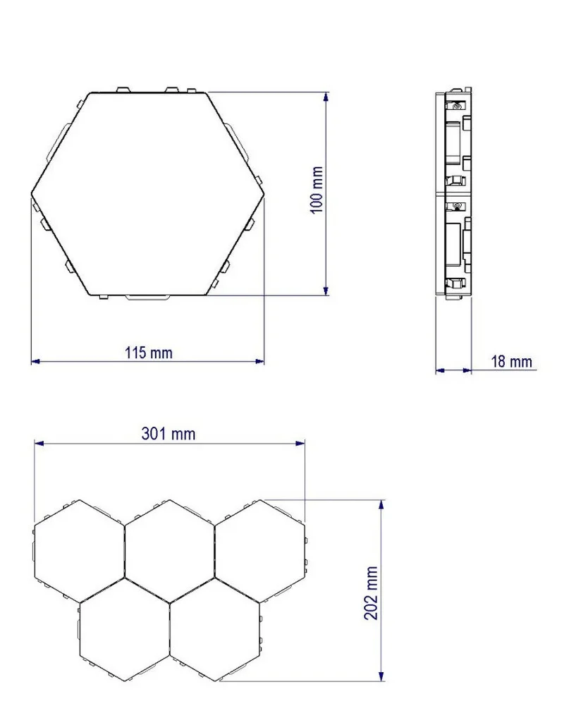 Как модули прикрепляются к стене? Шестигранные модули можно прикрепить к стене с помощью липких прокладок, поставляемых в стартовой упаковке, или с помощью отверстий на задней стороне каждого модуля для крепления к гвоздям. (Для получения дополнительной информации ознакомьтесь с инструкциями) Какое энергопотребление на модуль? Потребляемая мощность на модуль составляет 0,7 Вт. Какая цветовая температура светильник? Температура освещения светодиодного освещения составляет 3200k. Сколько люменов на модуль? Каждый модуль производит 80 люмен. Как они включаются/выключаются? Каждый модуль имеет датчик приближения, который определяет расстояние вашего тела, когда вы соприкасаетесь с модулем, он будет включать/выключать. Вы можете использовать любую часть тела или другие проводящие материалы! Сколько модулей можно подключить к одному источнику питания? Мы предлагаем максимальное количество 65 модулей от одного источника питания. Каковы размеры каждого модуля? Ширина самой широкой части каждого модуля (от угла до угла) составляет 115 мм. Больше информации можно найти здесь. Как питаются модули? Каждый модуль подключается через магнитные края, питание передается через каждый модуль через металлические штыри, выступающие с каждого края. (Они не работают от батареек) Какова длина кабеля? Кабель питания, поставляемый в стартовом блоке, составляет 2 метра в длину. Есть ли модули RGB? Нет. Цвет освещения теплый белый и не изменяемый. Подключено ли приложение/поддерживается Смарт? Нет. Модули требуют тактильного и физического взаимодействия.