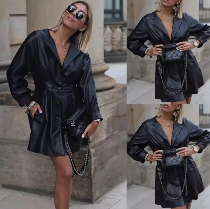 Женская Байкерская кожаная куртка, винтажная Асимметричная куртка из искусственной кожи с большими лацканами и длинными рукавами, мотоциклетная кожаная куртка со скошенной молнией, 1 шт.