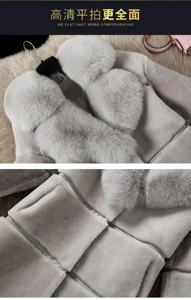 Женское меховое пальто с воротником из искусственного лисьего меха, зимнее модное серое пальто из искусственного меха, женская элегантная Меховая куртка, Толстая теплая верхняя одежда