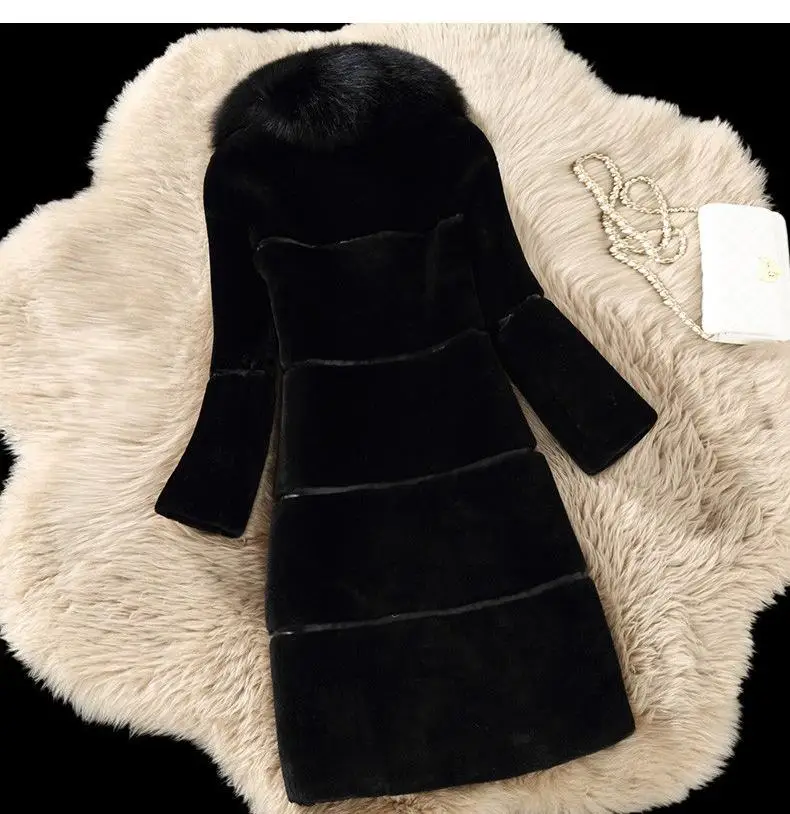 Женское пальто с воротником из лисьего меха, длинное теплое пальто ...