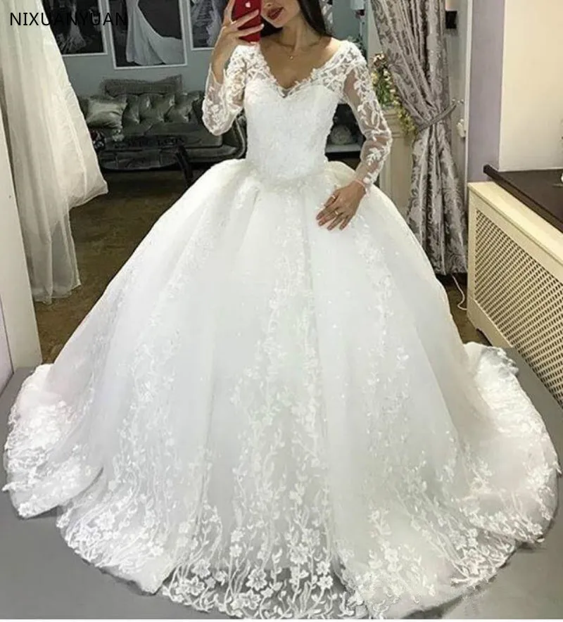 Винтажное свадебное платье, бальное платье с длинным рукавом, круже...