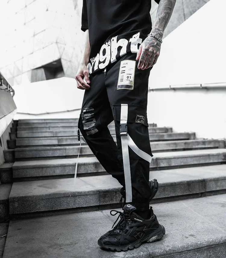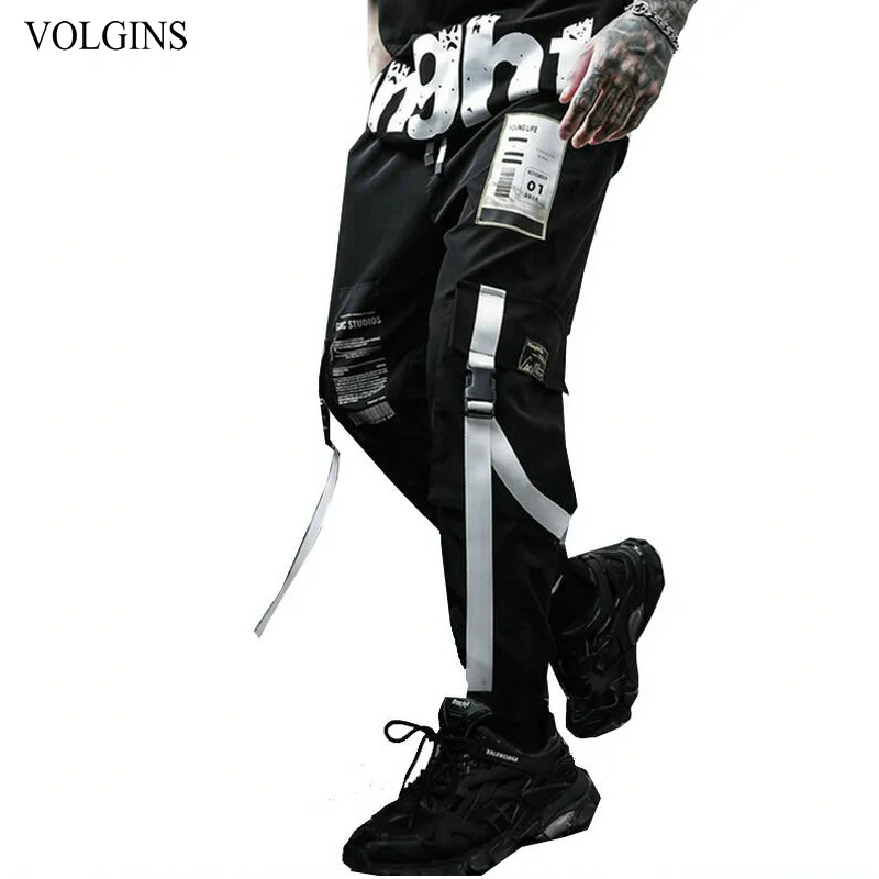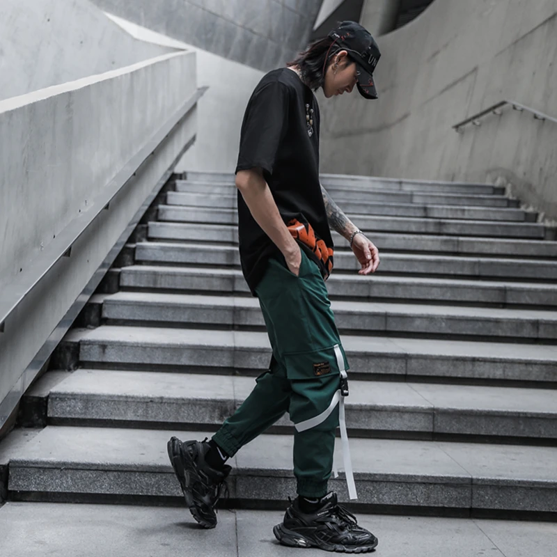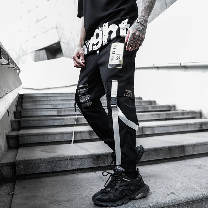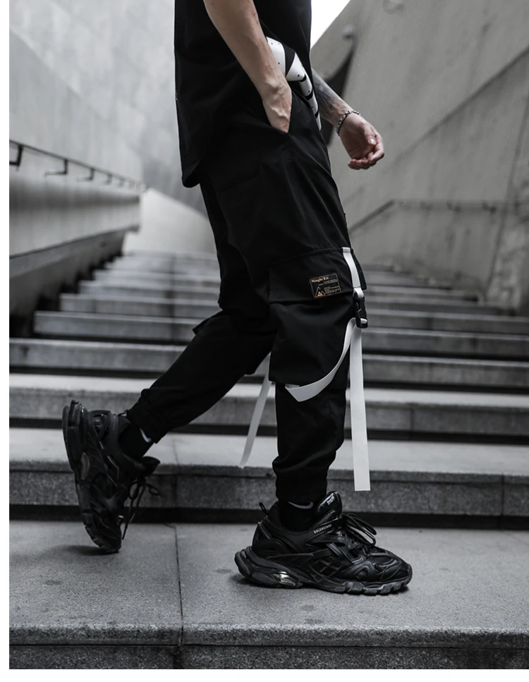 Мужские брюки в стиле хип-хоп, повседневные брюки-карго в стиле High Street с лентами и карманами, военные джоггеры, мужские брюки, 2022