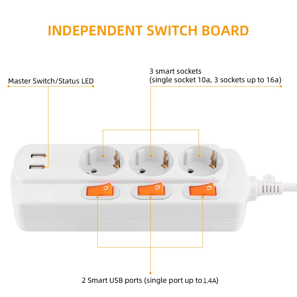 Штепсельная Вилка EU USB, настенная домашняя электрическая розетка с переключателем 2AC, штепсельная вилка EU, 2 порта, зарядное устройство USB, плата питания удлинитеьь для розеток с усб