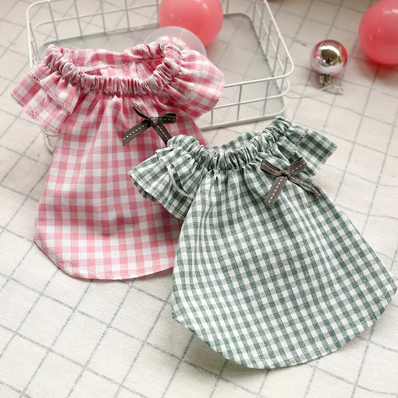Клетчатые хлопковые банты, рубашки для питомцев, одежда для маленьких и средних животных, костюмы для щенков собак, летние весенние костюмы для кошек, свежий наряд для йорков, Мопсов