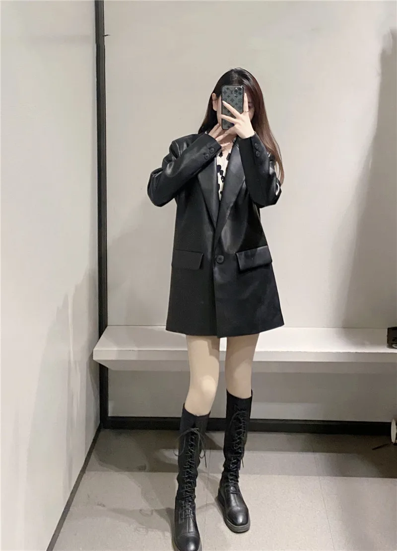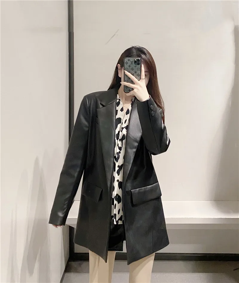 Свободные блейзеры из искусственной кожи, женская кожаная куртка, пальто, новые женские куртки, верхняя одежда, женские пальто, женский кожаный костюм
