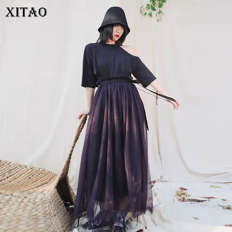 Женская сетчатая юбка XITAO, повседневная плиссированная юбка с эластичным поясом и высокой талией, нестандартный стиль, весна-лето 2020