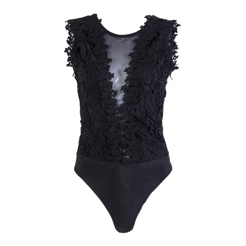 Сексуальные Обтягивающие кружевные женские боди с глубоким V-образным вырезом, Стрейчевые без рукавов, черный, белый цельный комбинезон для женщин