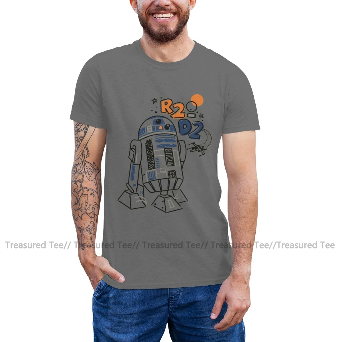 Футболка R2d2 R2 D2, футболка с рисунком рисунка из 100 хлопка, Мужская футболка с коротким рукавом