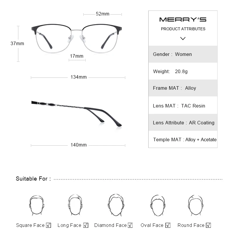 Женские очки по рецепту MERRYS, дизайнерские очки унисекс в стиле р...