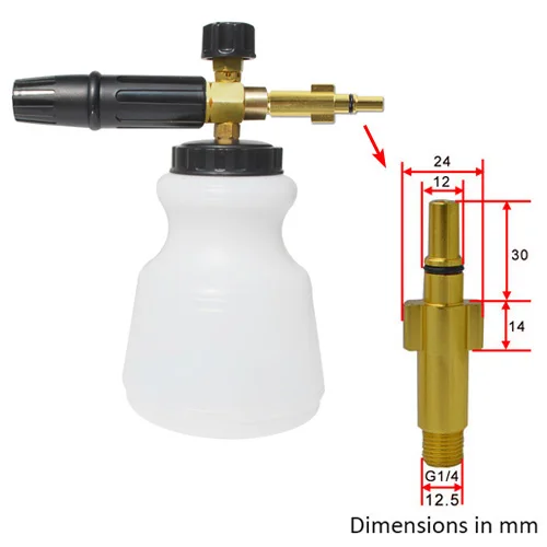 4. Помимо прочего латунная насадка 1,1 мм для создания обильной пены на 60 ~ 130bar (900 ~ 1850psi) малых моек высокого давления. Стандартный пенная насадка с 1,25 мм сопло установлен составляет, как правило, для мойки высокого давления выше 130bar (1850psi). Если вы имеете домашнем хозяйстве, установка для мытья под давлением, для создания густая пена, пожалуйста, разобрать 1,25 мм сопло из пенная насадка с плоская отвертка, и собрать 1,10 мм к вашему Высочайшее качество образования пены.