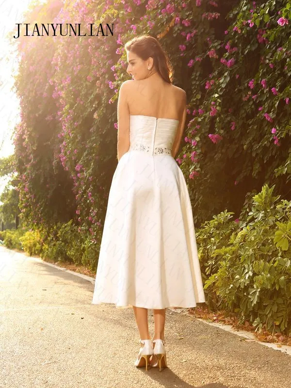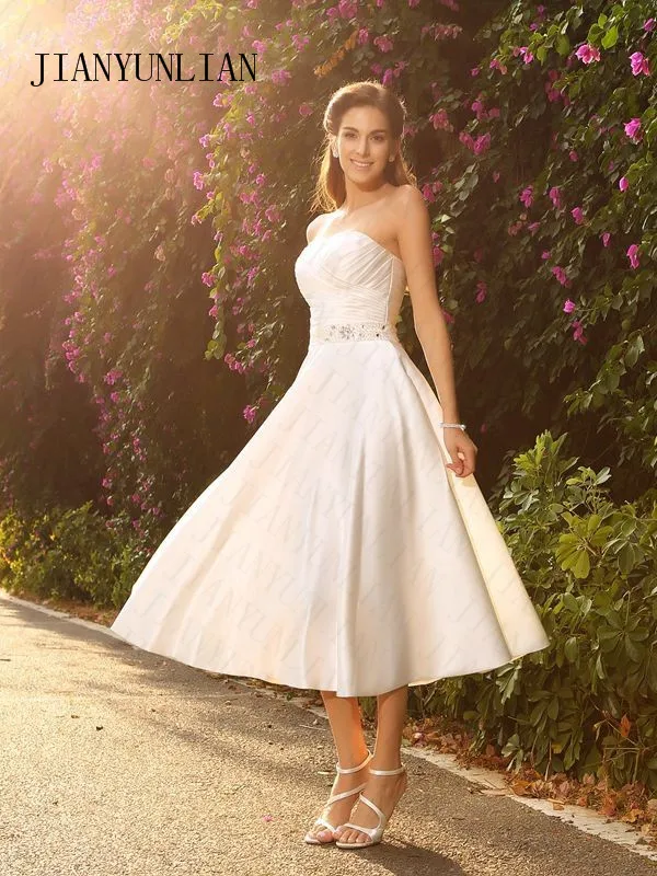 2022 Элегантные короткие свадебные платья длиной ниже колена без бретелек трапециевидные свадебные наряды недорогие Короткие свадебные платья на заказ