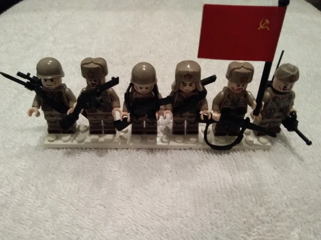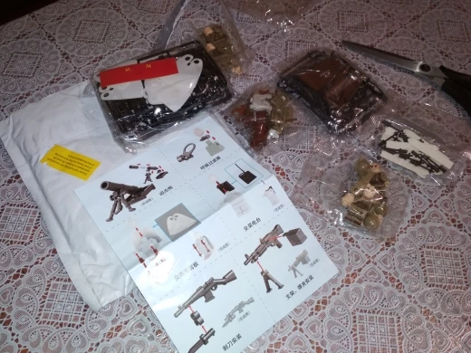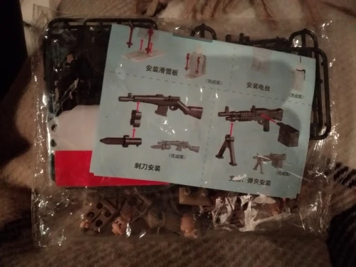 Наборчик в принципе неплохой, давно хотел себе советских бойцов. Появилось много оружия на ВОВ, ВМВ. Помимо советского оружия, в комплект входит и оружие США, Британии, Германии. Всё что нарисовано на картинке, всё присутствует в наборе. Но шёл набор долго, чуть больше месяца хотя обещали доставить за две недели. А так в целом набор неплохой, прикупить советую. Хотя есть и лучше.