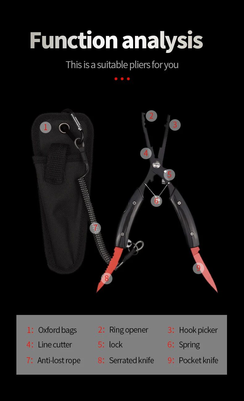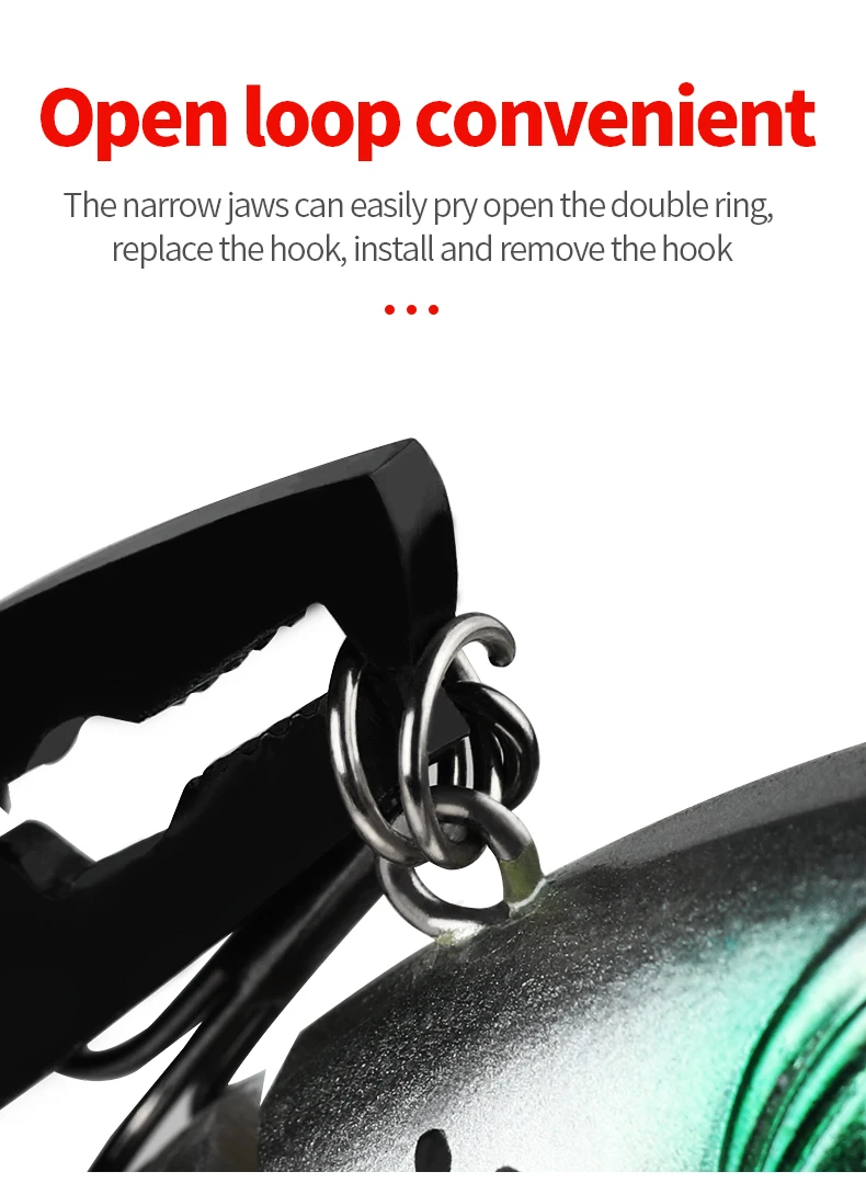 + Несколько функций позволяют вам резать леску/провода; Разделить кольца приманки; Удалить приманки и крючки; Включая нож и пилу.