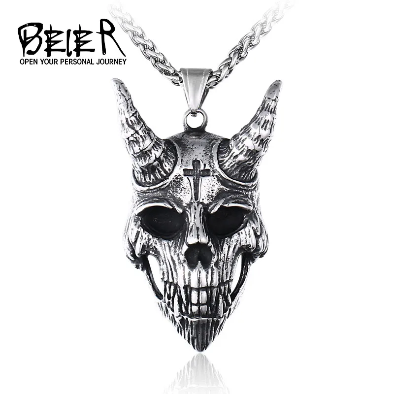 Мужская подвеска с крестом Сатанинского дьявола BEIER, кулон в виде черепа из нержавеющей стали в готическом стиле, Ювелирное Украшение в байкерском стиле, BP8-551