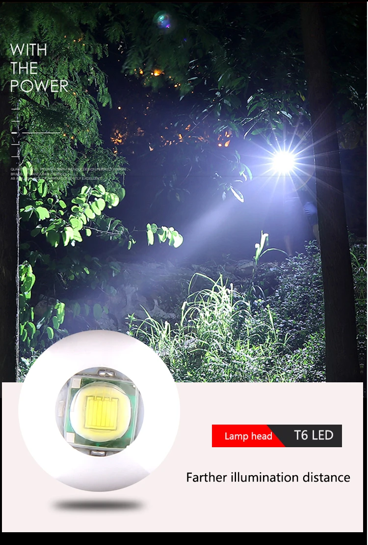 Светодиодный фонарь T6, перезаряжаемый по USB, портативный, встроенный литиевый аккумулятор 1200 мА ч, водонепроницаемый светильник для кемпинга, регулируемый фонарик