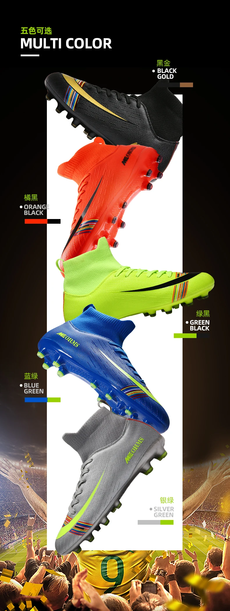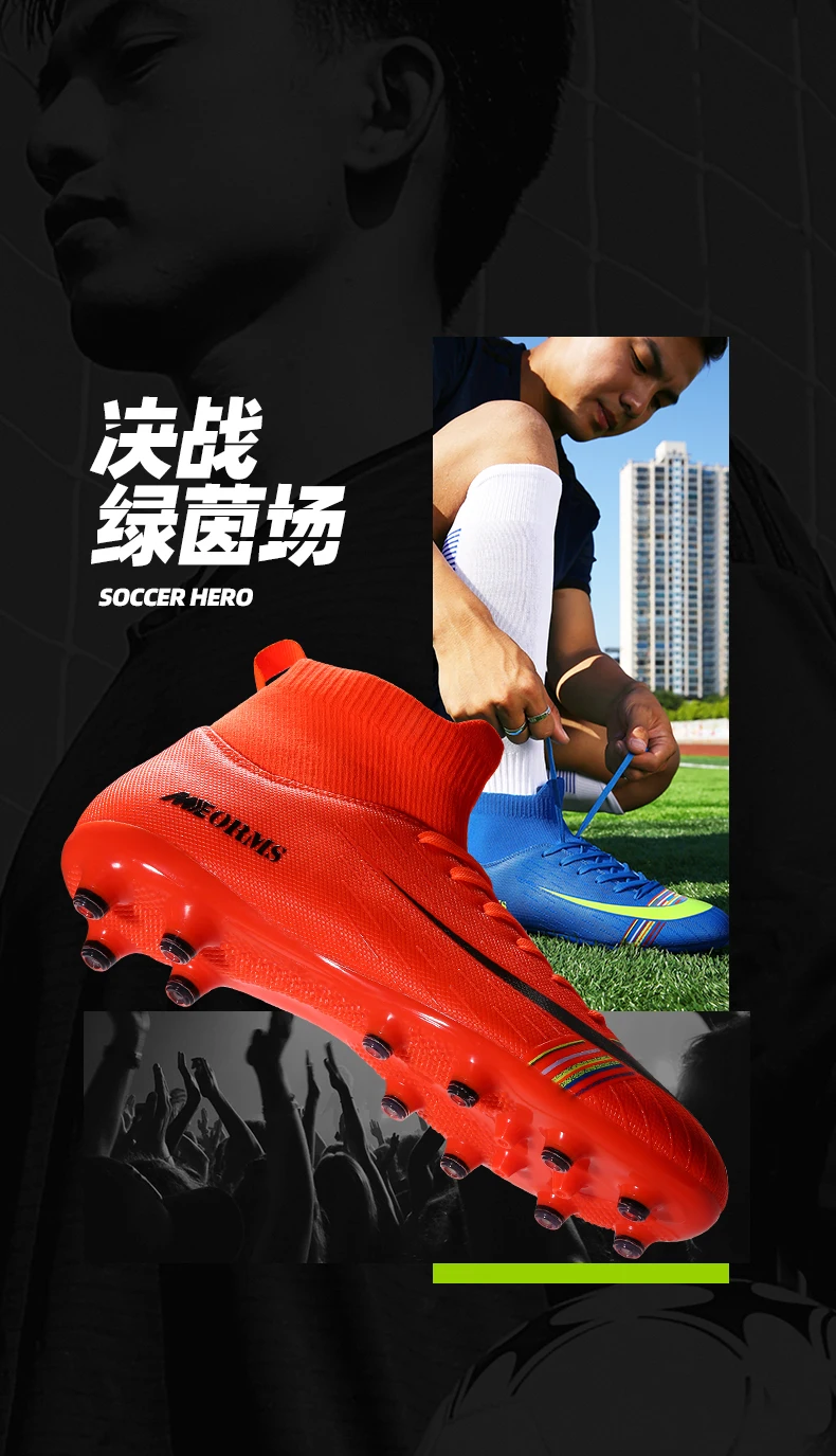 Футбольная обувь для мужчин, футбольные бутсы, бутсы, Длинные шипы, TF шипы, высокие кроссовки, мягкая обувь для детей
