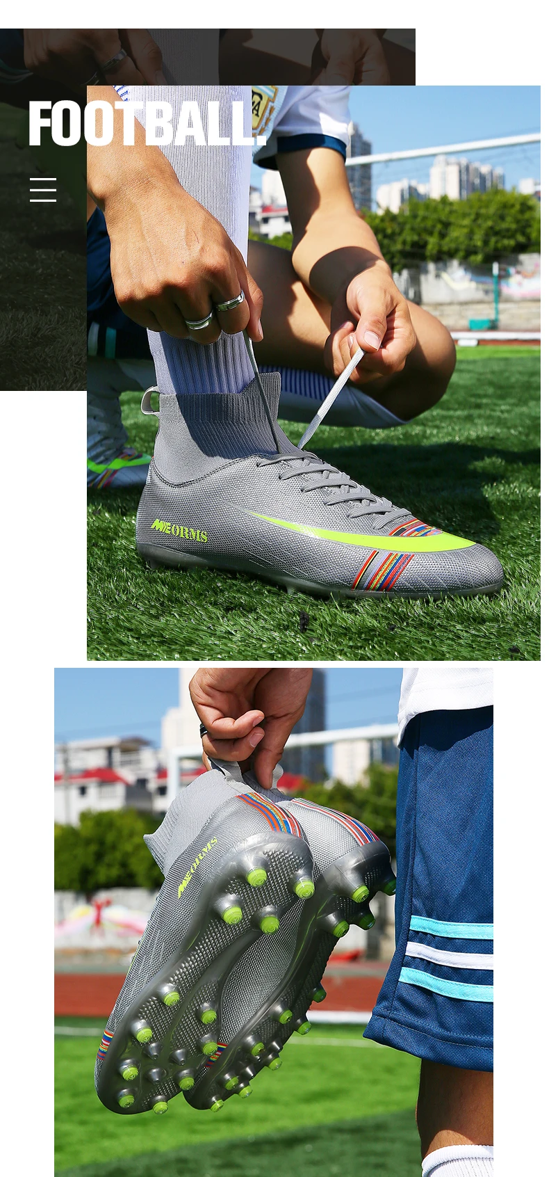 Мужские футбольные туфли с высоким верхом FGTF, уличные нескользящи...