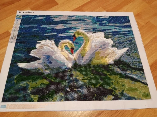 Заказывала картину размером 40х50, а пришло 35х45. размер не стандартный. Рамку под эти размеры подобрать будет сложнее. Порадовало то, что все стразы упакованы в зип пакеты и их много все они пронумерованы и это большой плюс. Не сортировать их, а сразу можно начинать выкладывать. картина пришла мятой но думаю распрямится после выкладки это не беда. А вот с рамку конечно будет найти сложнее под эти размеры, но думаю можно посмотреть видео на ютуб и сделать самой. А так все норм нравится!