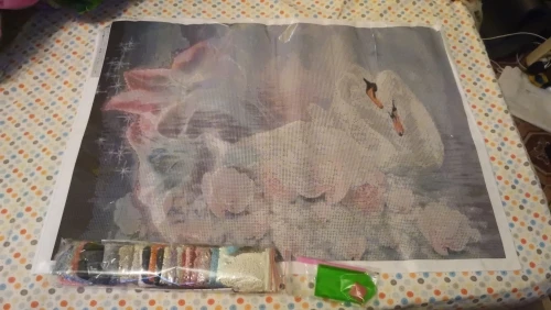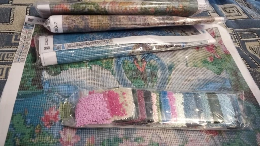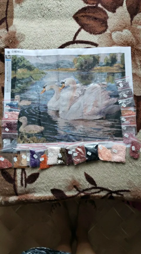 быстрая доставка, картина почти готова. продавец молодец, бусинок с запасом, единственное положил мало клея для ручки