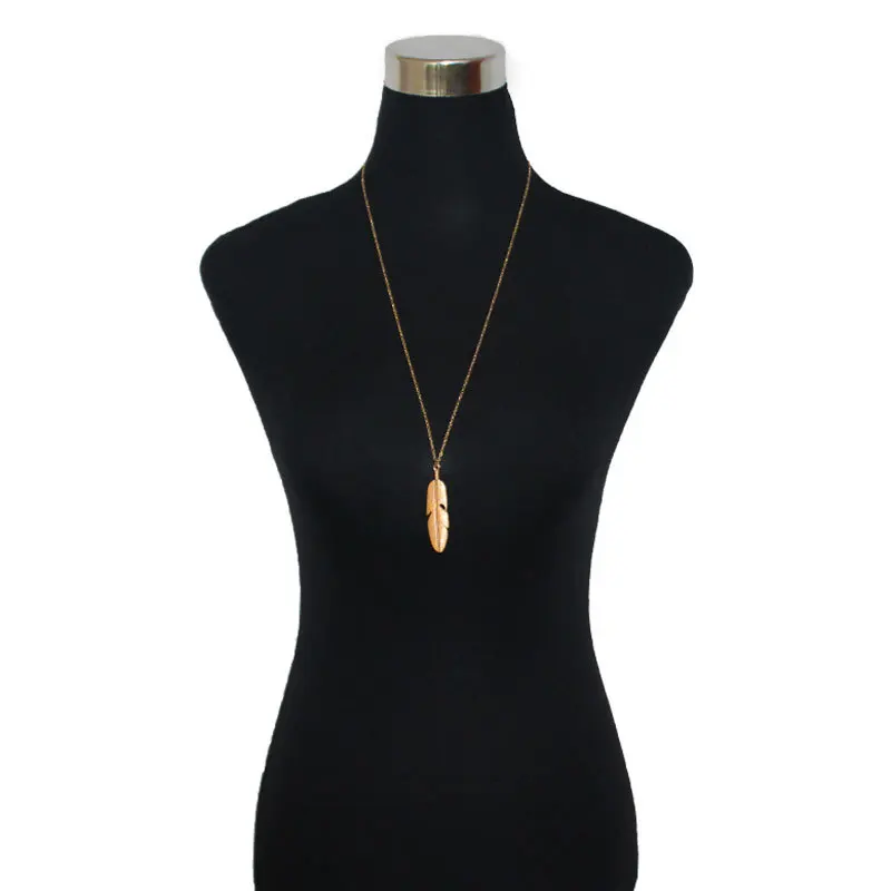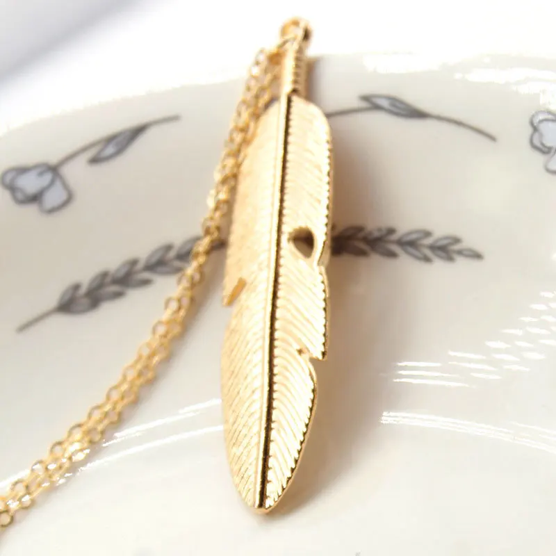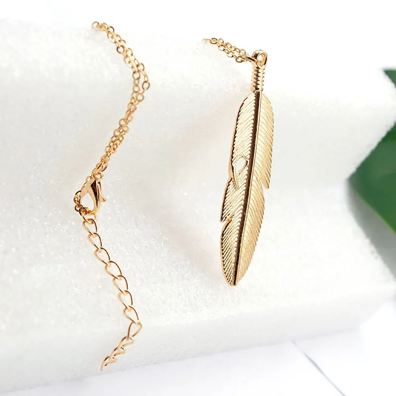Ожерелья с подвеской в виде пера для Женщин, Модные Винтажные длинные цепочки золотого цвета, чокеры, ювелирные изделия, подарки, бижутерия