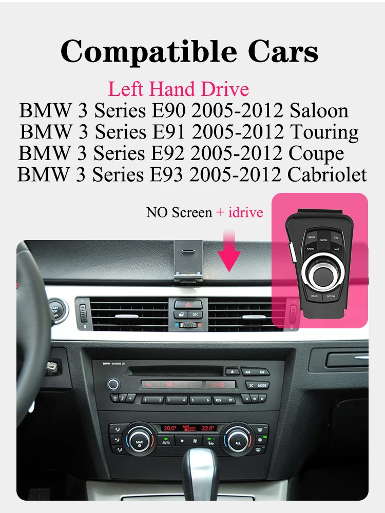 Левый руль автомобиля:Для BMW 3 серии E90 2005-2012 салунДля BMW 3 серии E91 2005-2012 TouringДля BMW 3 серии E92 2005-2012 купеДля BMW 3 серии E93 2005-2012 Cabriolet