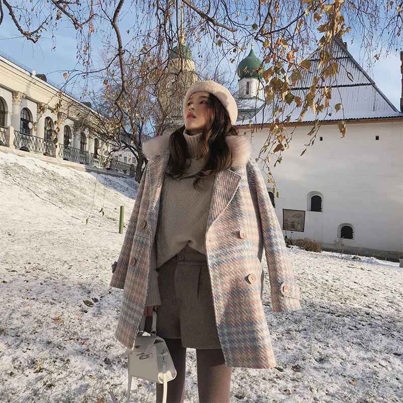 Женское пальто, верхняя одежда, зимняя одежда, Модное теплое шерстяное Смешанное женское элегантное двубортное шерстяное пальто, 2021