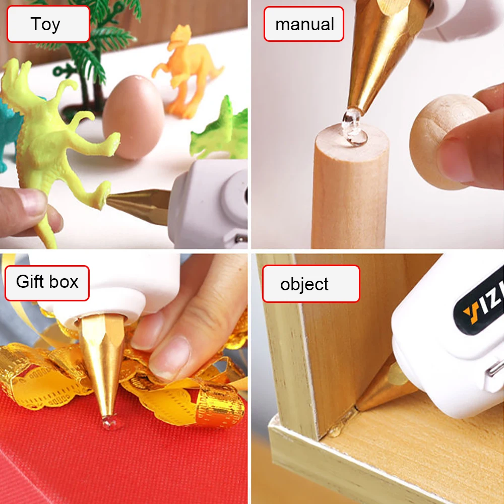 2. Для того, чтобы сделать вашу работу плавно, пожалуйста, предварительно Нагрейте клеевой пистолет в течение 3-5 минут (время разогрева) перед использованием.