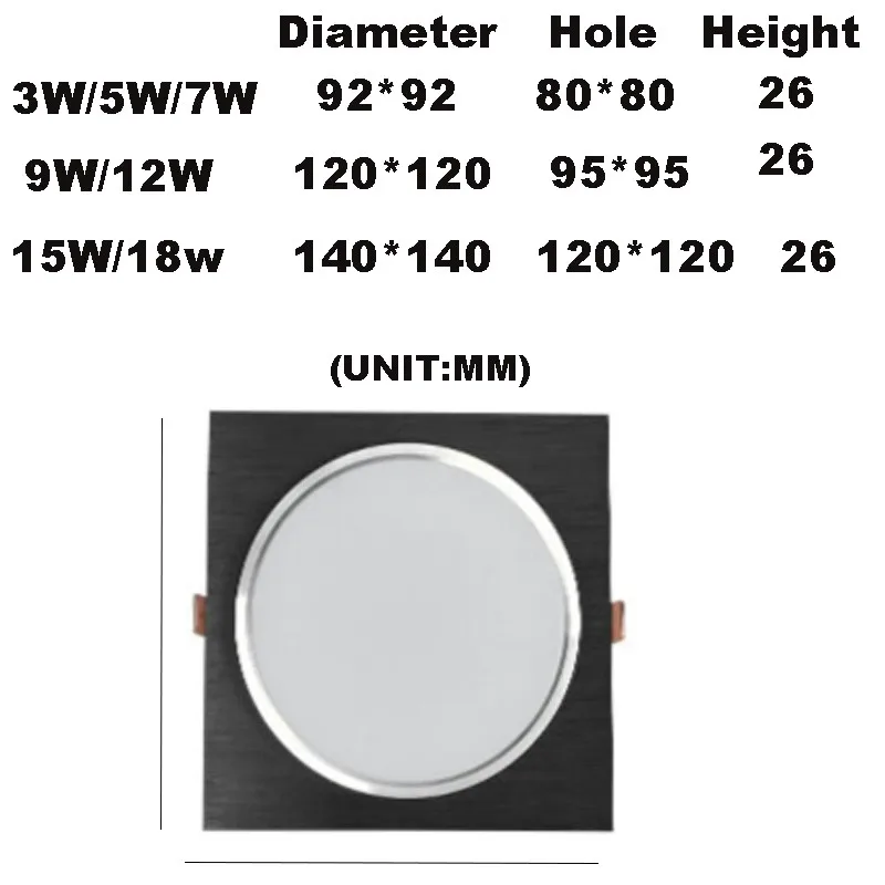 Приглушаемый светодиодный потолочный светильник, 3 Вт, 5 Вт, 7 Вт, 9 Вт, 12 Вт, квадратная утопленная лампа 220 В, 230 В, 240 в, лампочка для спальни, кухни, комнатное домашнее точечное освещение