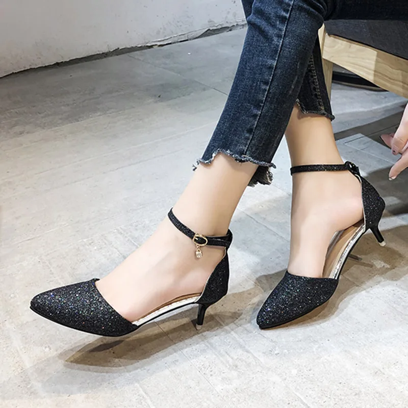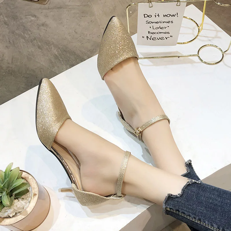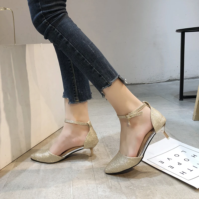 Женские летние сандалии с ремешком на щиколотке, свадебные туфли, серебристые и золотистые вечерние туфли, женские туфли-лодочки на среднем каблуке