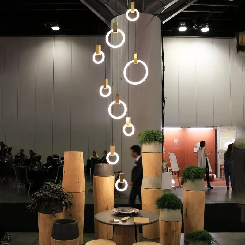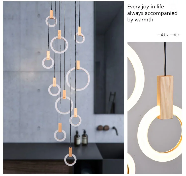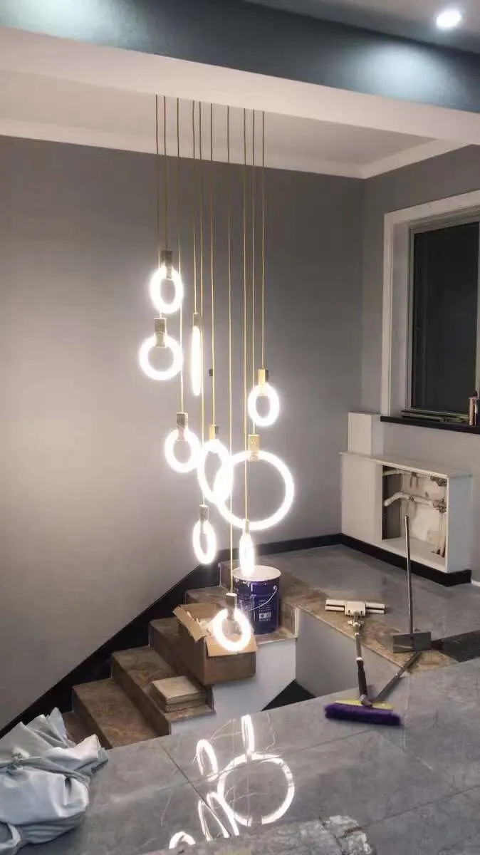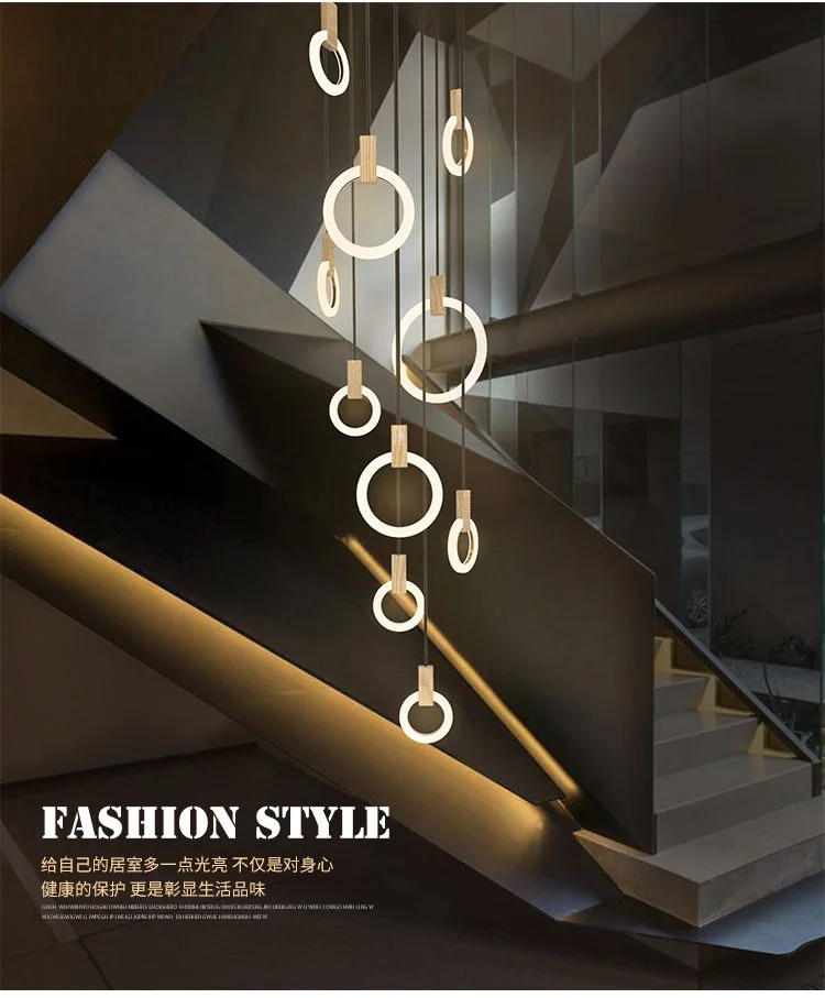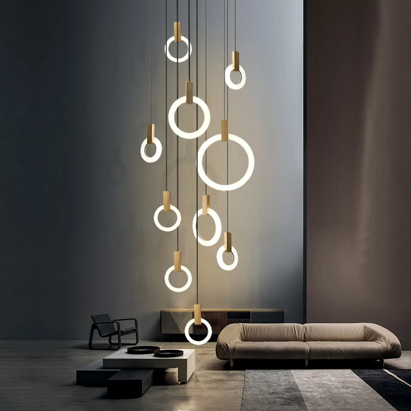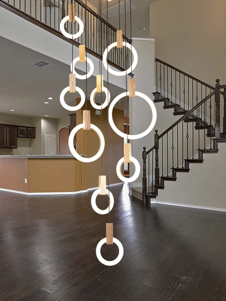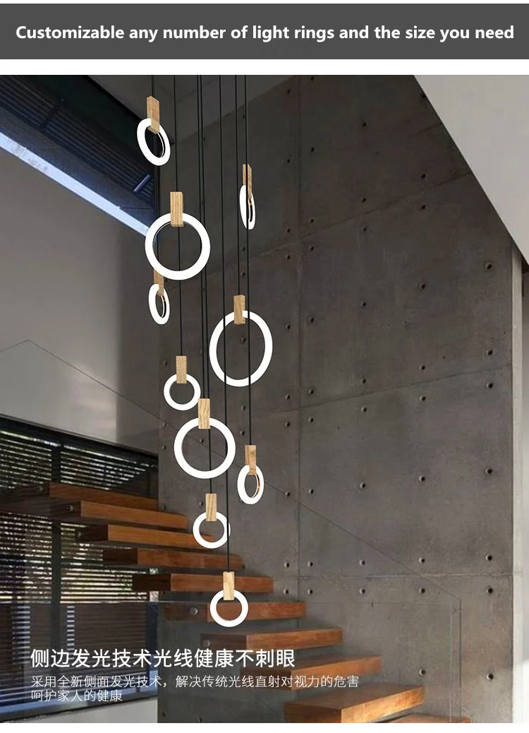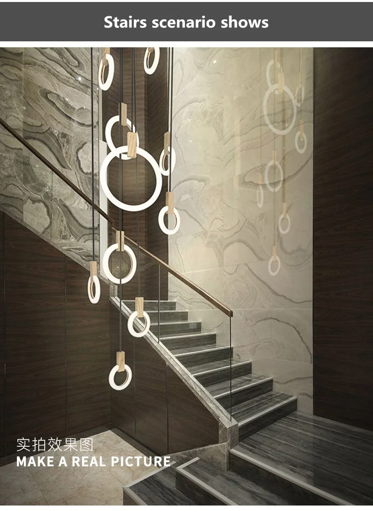 Современная золотистая круглая акриловая светодиодная лестница, длинные подвесные светильники в скандинавском стиле для гостиной, столовой, подвесные лампы