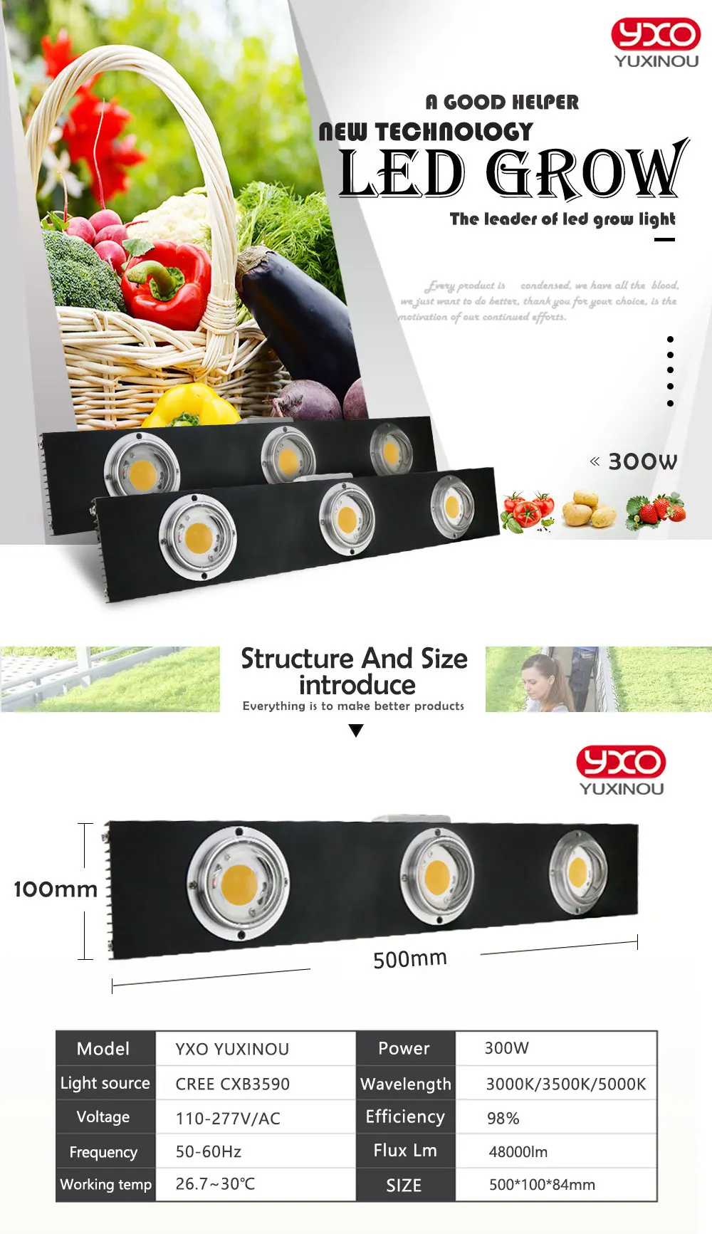 Светодиодсветильник лампа для выращивания растений, 300 Вт, CREE CXB3590
