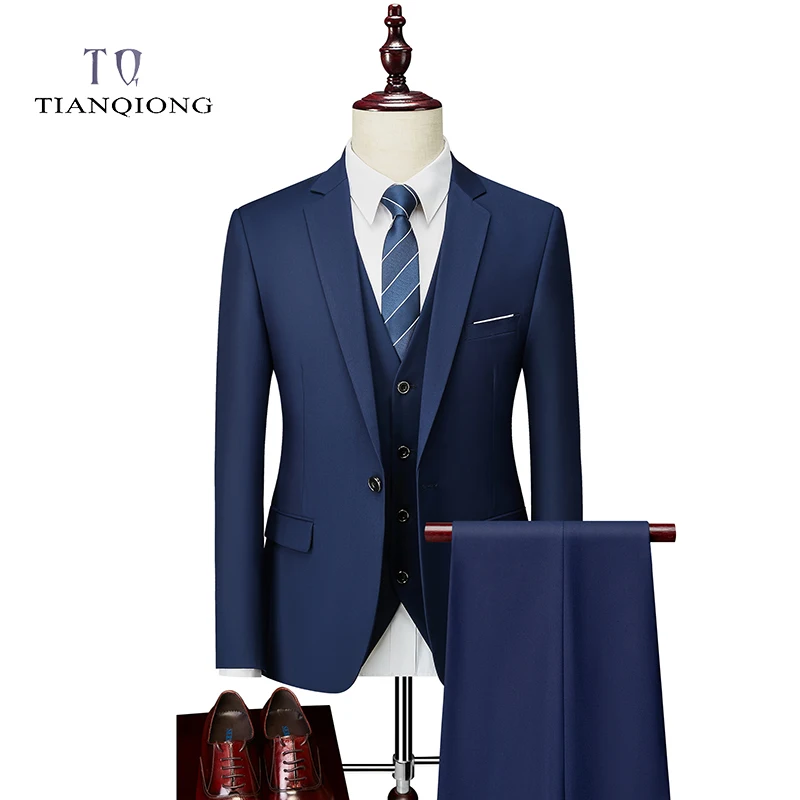 Мужской костюм, осень-весна 2020, высококачественный деловой костюм из трех предметов, приталенный разноцветный костюм большого размера с одной пуговицей
