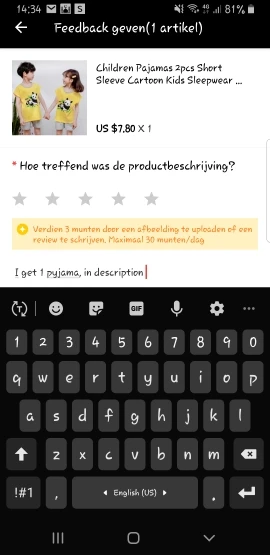 Качеством товара я довольна, а вот в остальном.... Продавец пишет, что пижама детская 2 штуки. Зачем? Это обман. В описании не написано, что стоимость за одну пижамку. А нужно только указать количество. Но цифру один можно расценить как плата за один комплект в две пижамки. И цена конечно не устраивает.