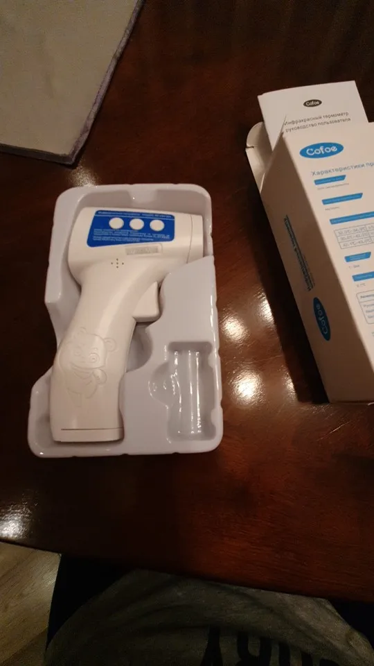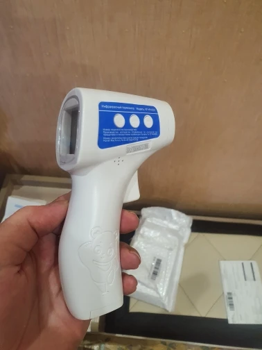 Посылка пришла в целости и сохранности. Продавец молодец, хорошо упаковал. Батареек в комплекте нет ( 3ААА - 2 шт.). Кнопку нажимаешь, сразу включается и измеряет температуру. Показало 36.6, поверить высокую температуру нет на ком. Очень удобный, мне нравится!