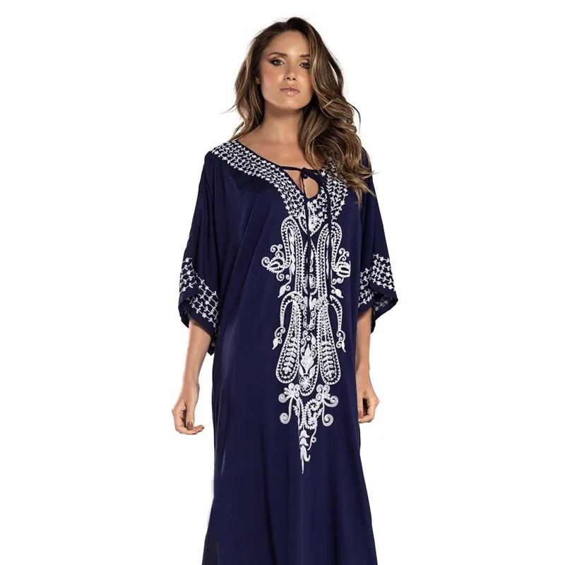 Женское пляжное платье, летнее повседневное свободное бикини, купальник-накидка, Длинные Макси-Платья на бретельках, Пляжная туника с разрезом, праздничная размера плюс