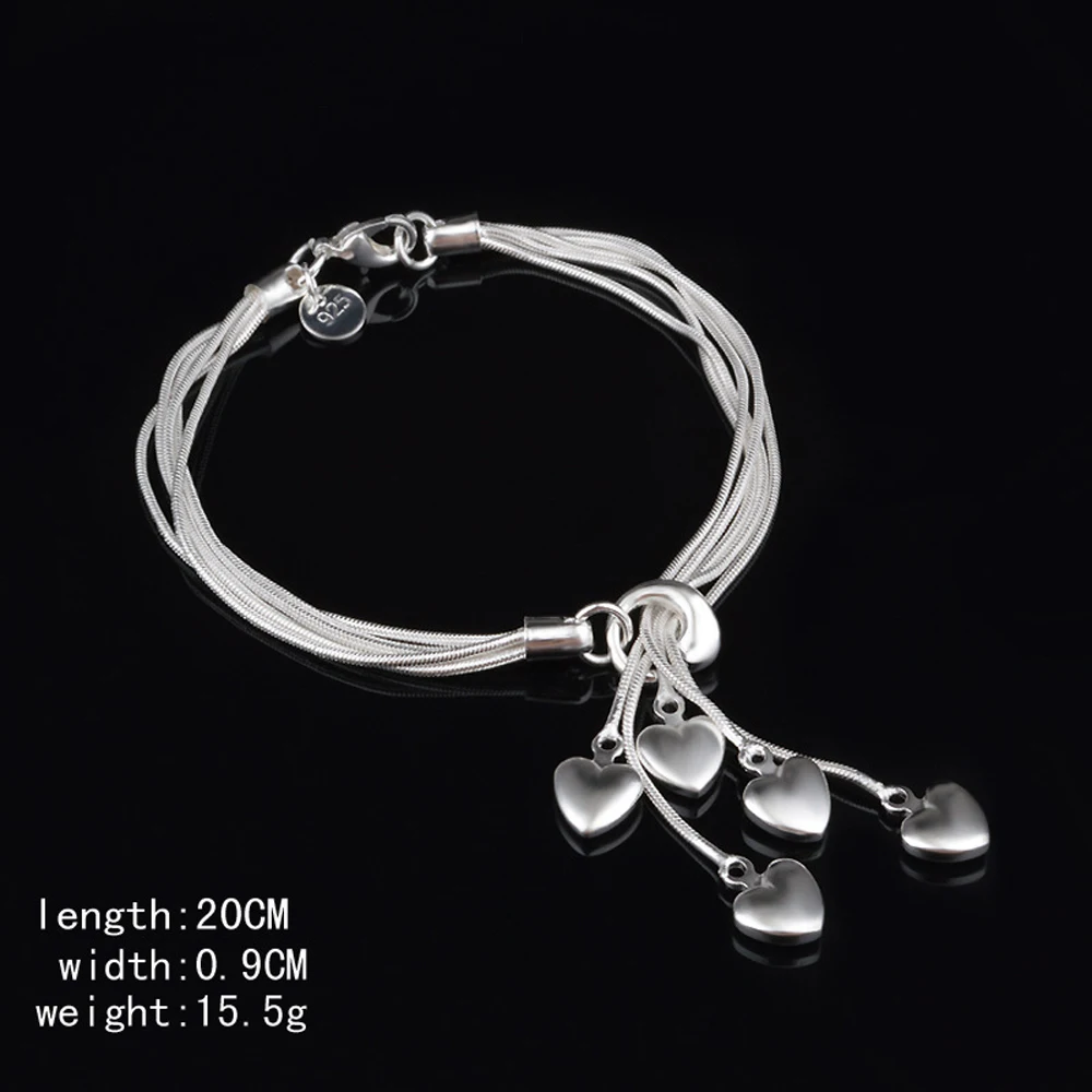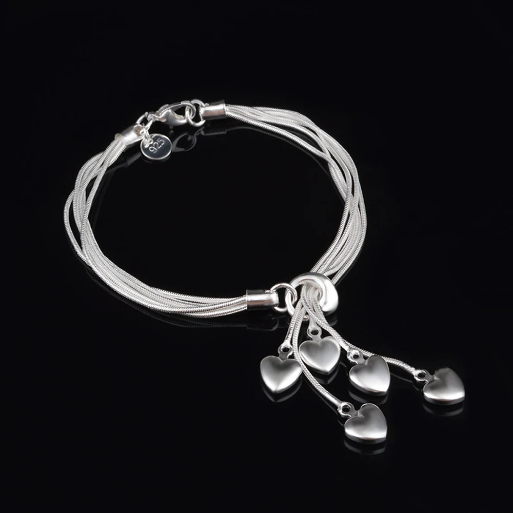 Новый Классический 925 стерлингового серебра в форме сердца Форма для женщин, браслеты с брелоками для женщин, браслеты с подвесками линии Свадебная вечеринка, хорошее ювелирное изделие, подарок