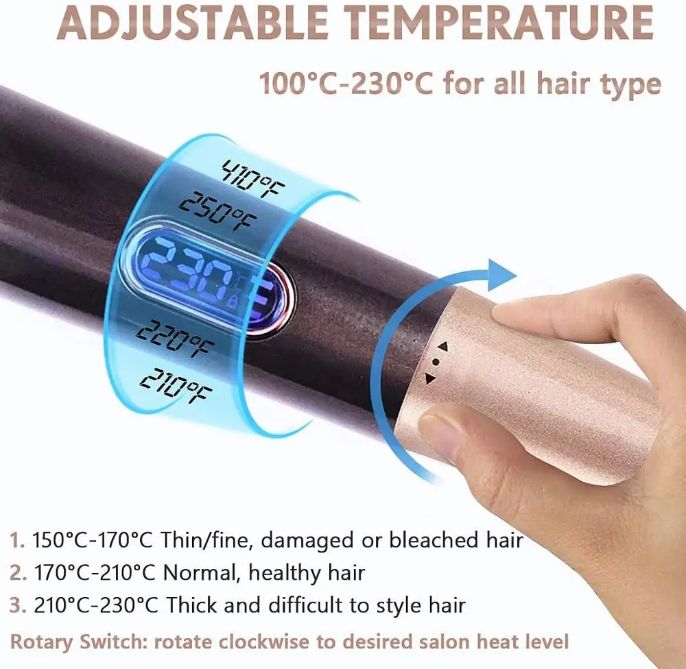 【 2 в 1 крепление для завивки, крепление для завивки. Ze kan voldoen aan al uw behoeften en versverschillende temperatuur instellокеанический (100 ℃ -230 ℃) для всех типов хартарей.