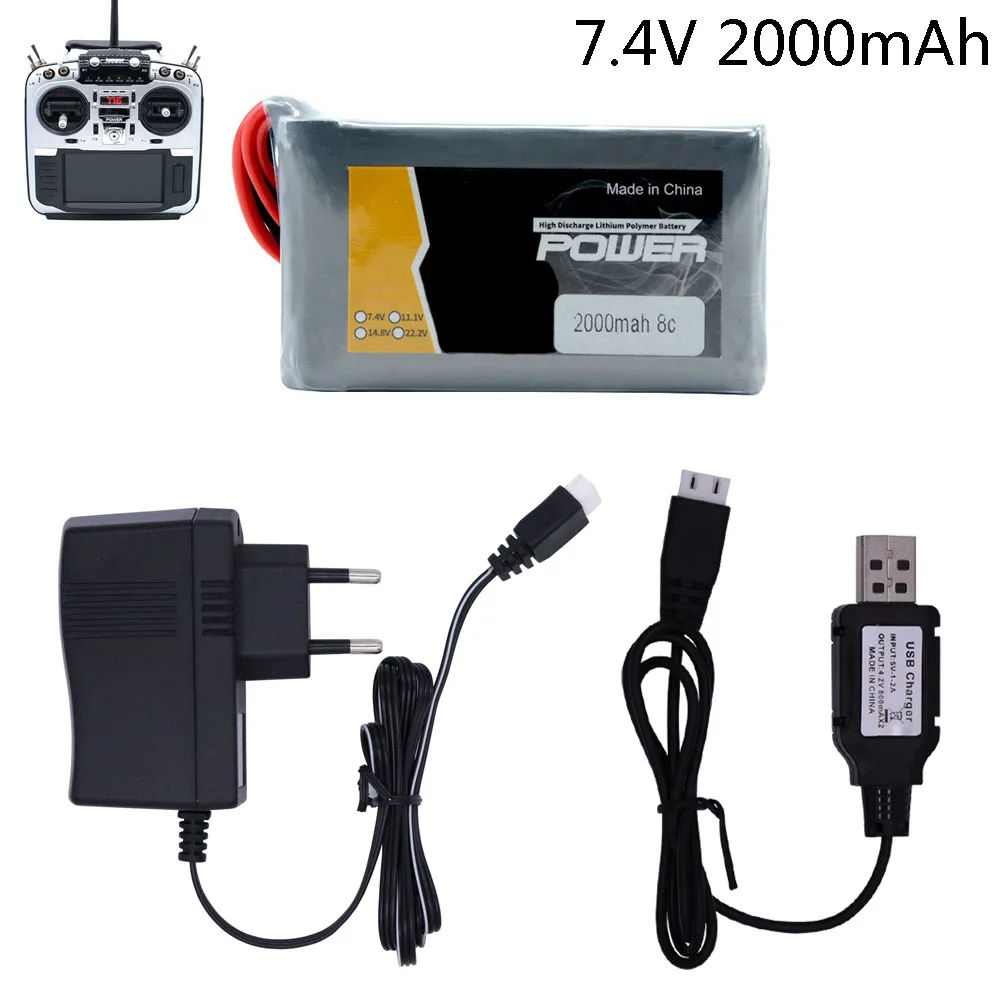 7,4 V 2000MAH 2S Lipo батарея с зарядным устройством для перемычки T16 T12 с открытым исходным кодом многопротокол радио передатчик батарея RC батарея