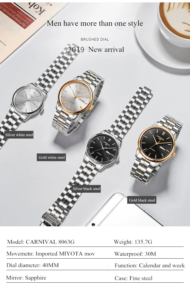 Новинка 2020, автоматические швейцарские карнавальные мужские часы MIYOTA, лучший бренд класса люкс, механический механизм, военные мужские роскошные брендовые наручные часы, водонепроницаемые полностью стальные часы, деловые модные повседневные часы C8063