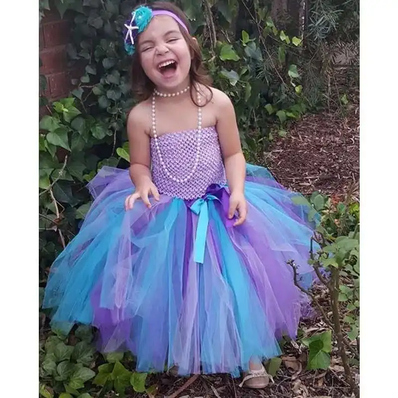 Морская звезда фиолетовая Пышная юбка принцесса платье для девочки вечернее платье для девочек с цветочным принтом детское платье для дня рождения, вечерние платье; Костюм для Хэллоуина