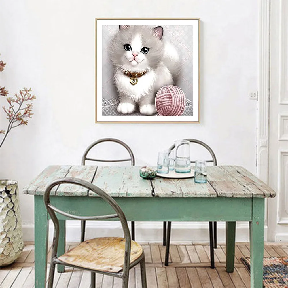 Маленькая кошка животное Алмазная картина круглая полная дрель Nouv...
