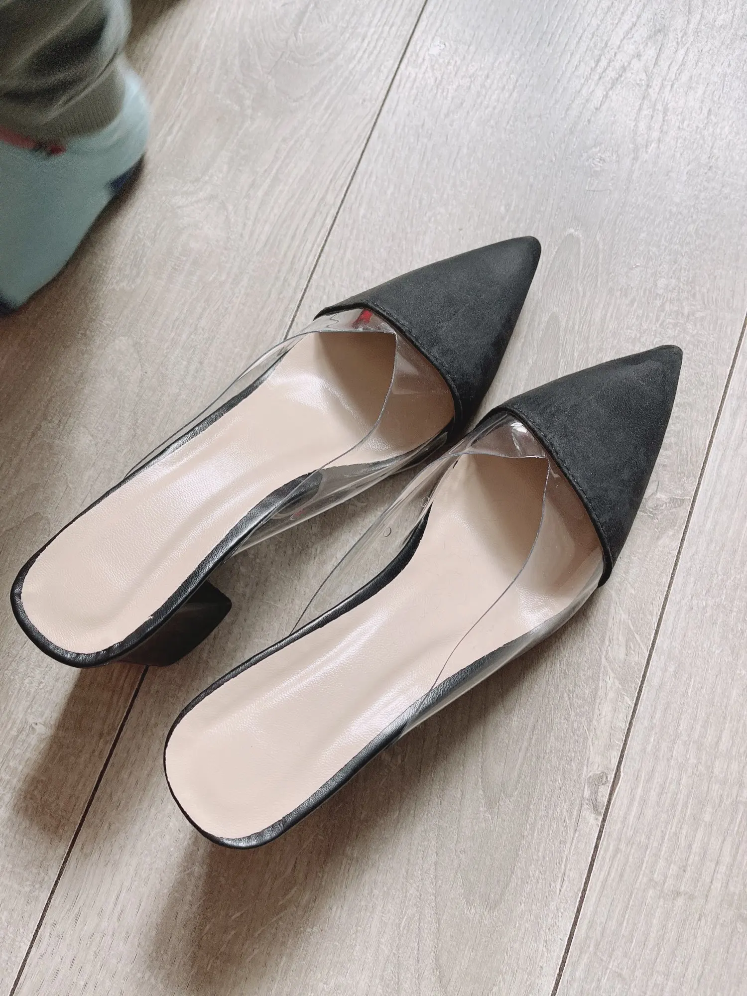 Замшевые туфли-лодочки, летняя обувь, женские модные шлепанцы на высоком каблуке с острым носком, женские туфли на низком каблуке