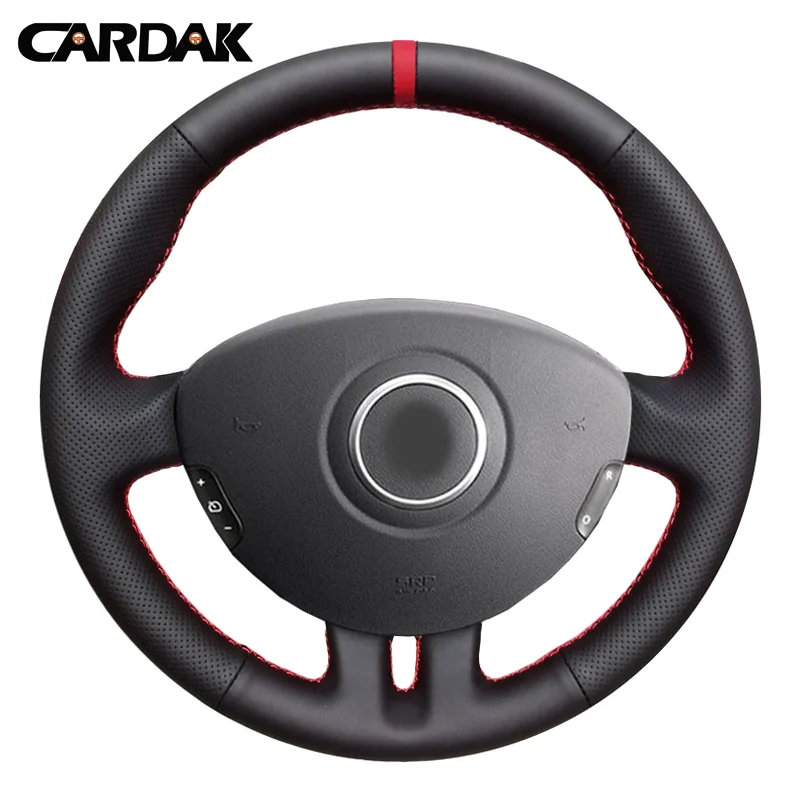 WCaRFun, черный кожаный, замшевый, красный маркер для Renault Clio ...