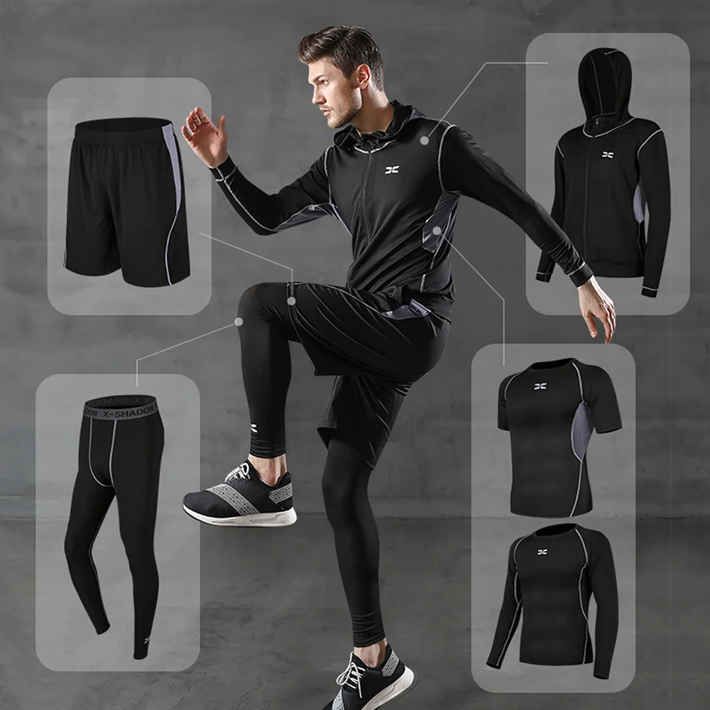 Мужские Компрессионные спортивные костюмы для занятий спортом, 5 шт./компл.