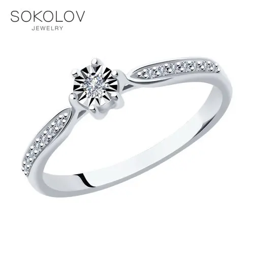 Кольцо SOKOLOV из серебра с бриллиантом, Серебро, 925, Женское, Ори...