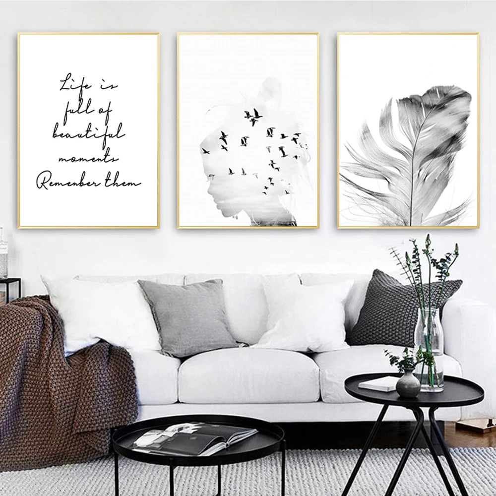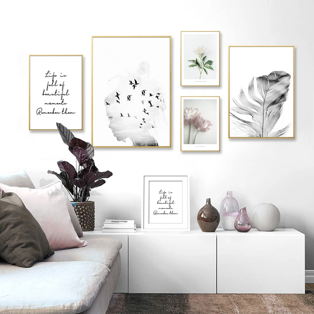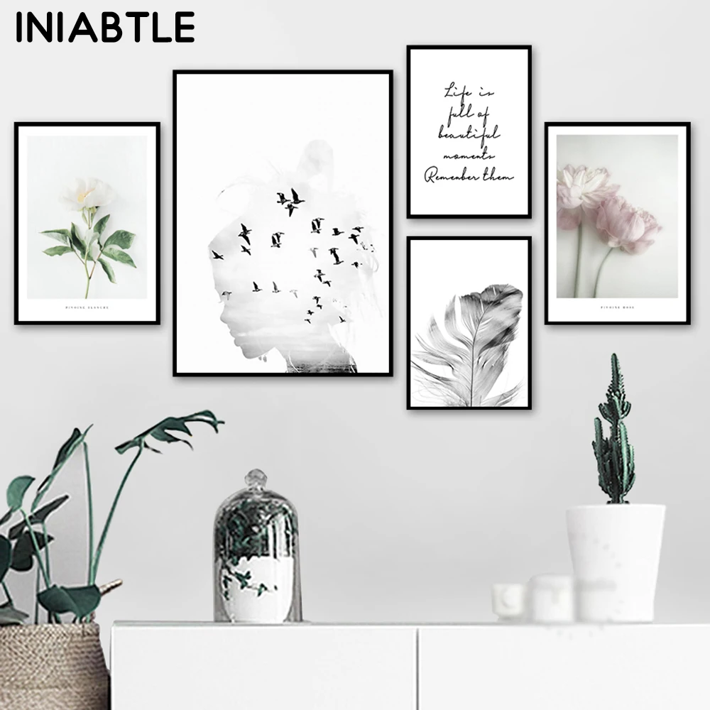 Девушка Птица Цветок перо пейзаж стены Искусство цитаты холст живопись скандинавские плакаты и принты настенные картины для декора гостиной