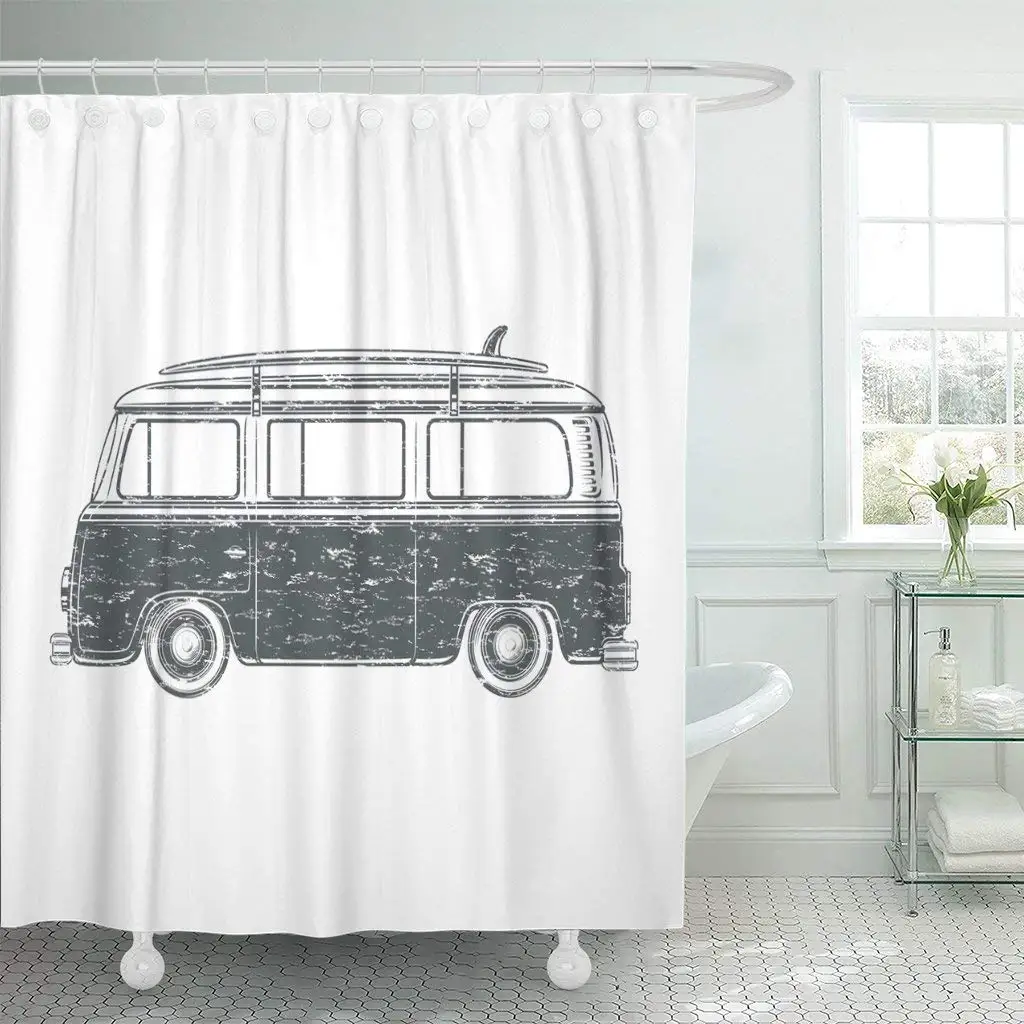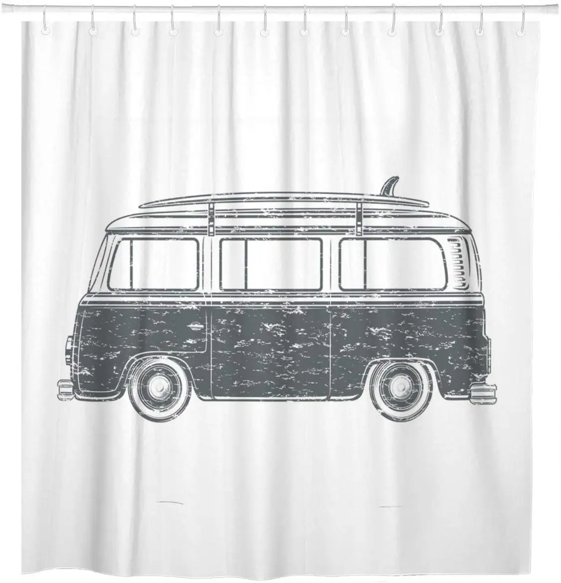 Surfer Ретро Винтаж дорожный Кемпер Ван, доска для серфинга лагерь занавеска для душа Водонепроницаемая полиэфирная ткань 72x72 дюйма с крючками