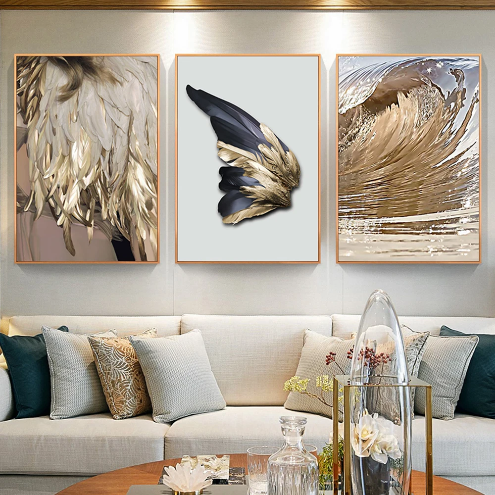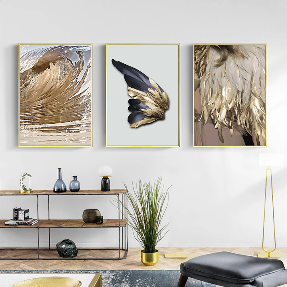 Скандинавские перья холст живопись золотые крылья постер и печать уникальный современный белый настенное искусство для гостиной спальни Декор прохода